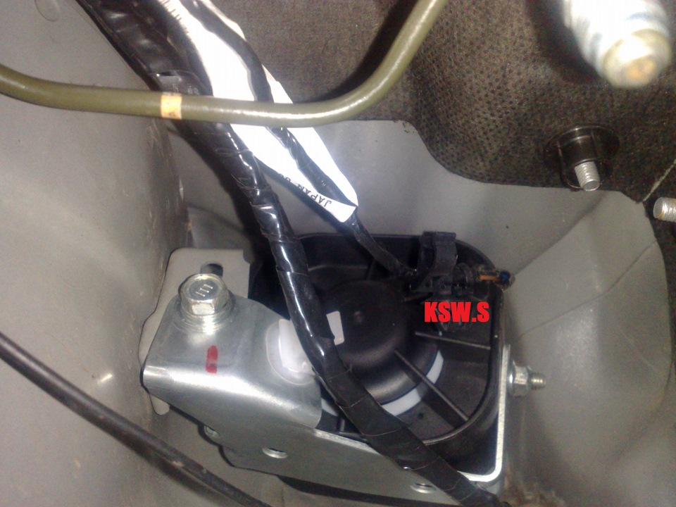 Сирена крепиться в нише за блоком ABS: