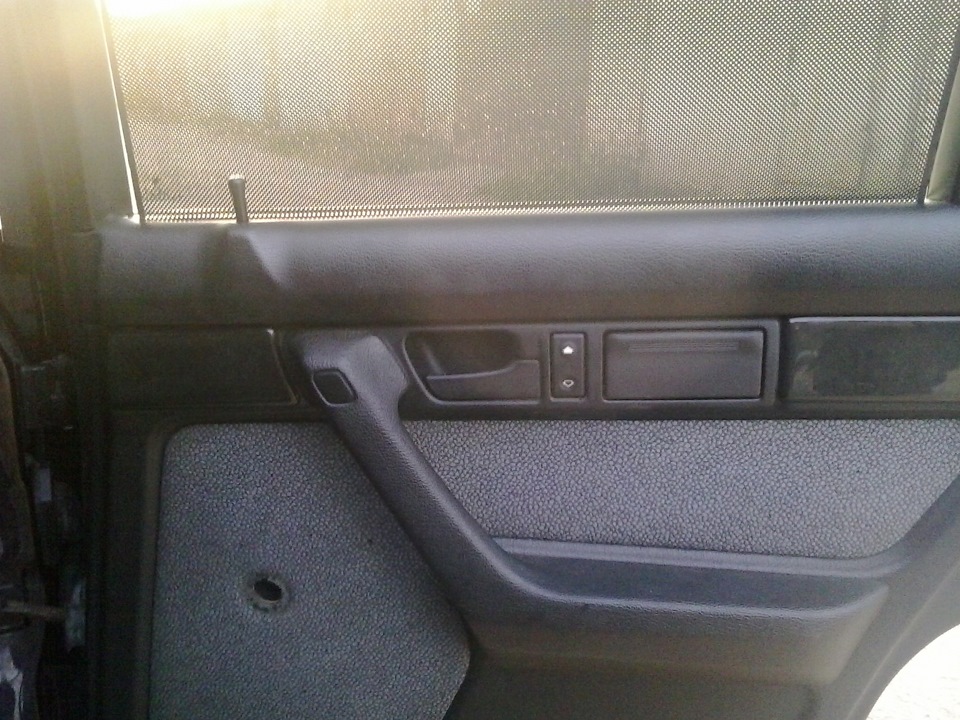 Потом выпала большая удача, купил на форуме НОВЫЕ передние дверные карты (то есть прям в коробке), с кожаными вставками, теперь надо задние вставки снова отклеить и переделать с кожзама на кожу похожую на передние :) Все-таки мой перетяг местами получился не очень — на самой первой двери местами не проклеилось, местами поплавилось, местами комки клея под резиной остались неровные, короче если присмотреться то заметны огрехи мелкие, а последняя дверь уже почти профессионально обтянута, можно наблюдать эволюцию по дверям по кругу )))
