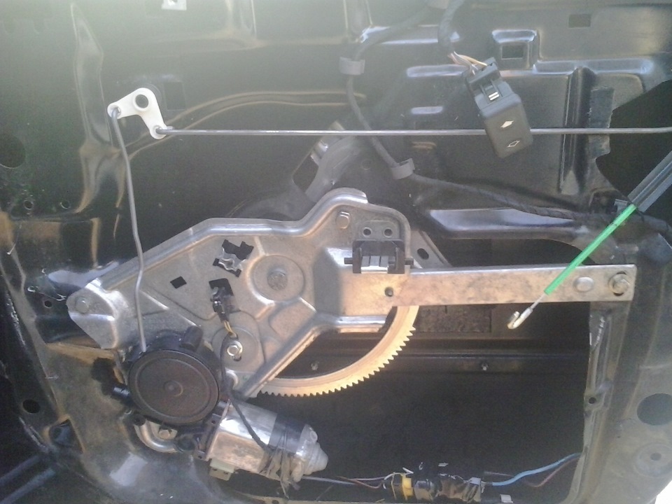 И так, установив проводку, подсоединяем ножницы новых механизмов к бегункам, прикручиваем сам электрический механизм с помощью ботов с гайками. Опять же, что бы найти нужное положение, советую подсоединить все фишки и все кнопки и во время сборки с помощью кнопки поднятия стекла искать нужное положение «ножниц». Кстати, механизм задних ЭСП будет работать только, если подключены и центральная кнопка на 4 клавиши и кнопка в самих дверях.