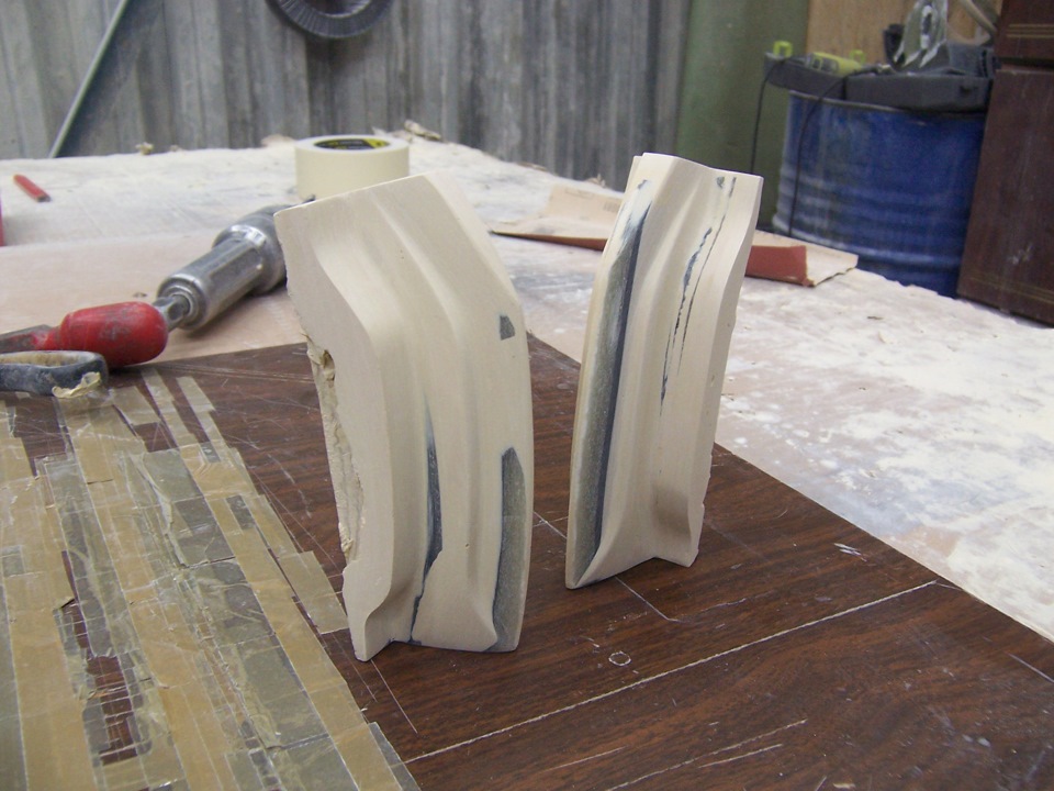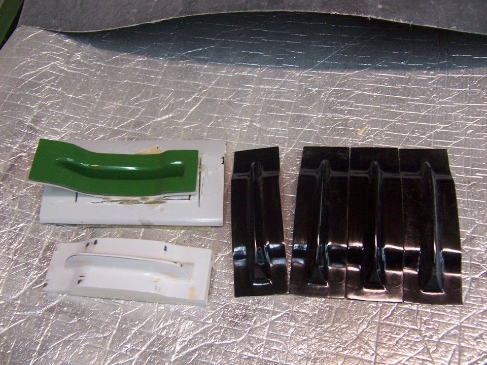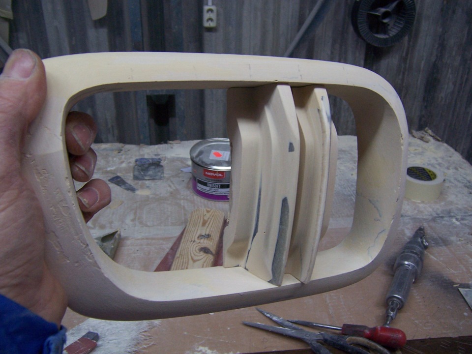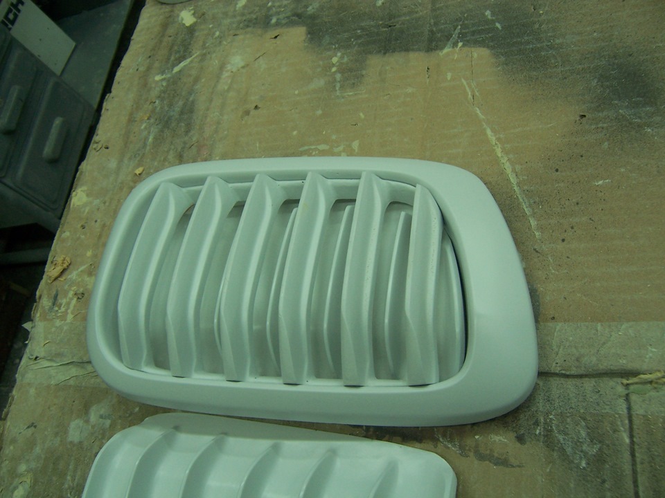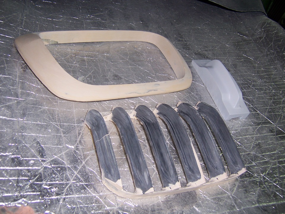 Формы сняты. И выклеены первые изделия. Не люблю кататься с макетами и если есть возможность, всегда снимаю форму. Во первых, свожу риск потери деталей в случае аварии к 0(всегда можно сколь угодно повторить стеклопластик после восстановления жестянки). Во вторых, макеты могут долго не прожить и пойти трещинами(шпакли иногда до 4см…) В третьих, если есть потенциальные покупатели, то могу удовлетворить их желание.