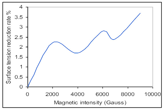 График изменения (уменьшения) поверхностного натяжения бензина от величины магнитной индукции в помощь пониманию почему 3-я сборка магнитов оказалась лишней.