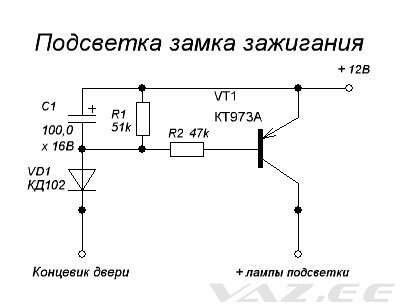 Схему димера для плавного выключения подсветки тоже нашел где-то в интернете (точно уже и не помню, где именно) Вот, собственно, и сама схема…