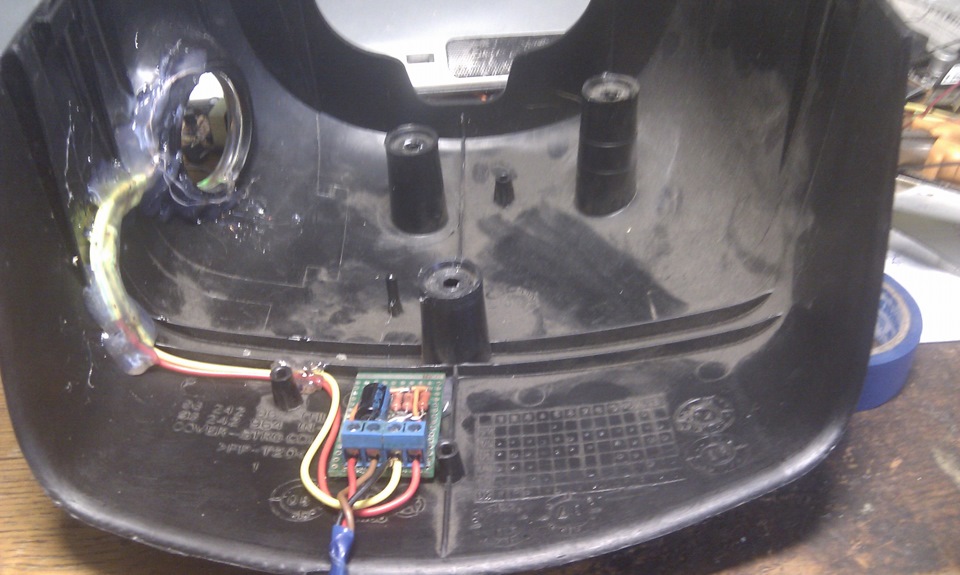 Потом полученную конструкцию приклеил к кожуху рулевой колонки. Получилось примерно так…