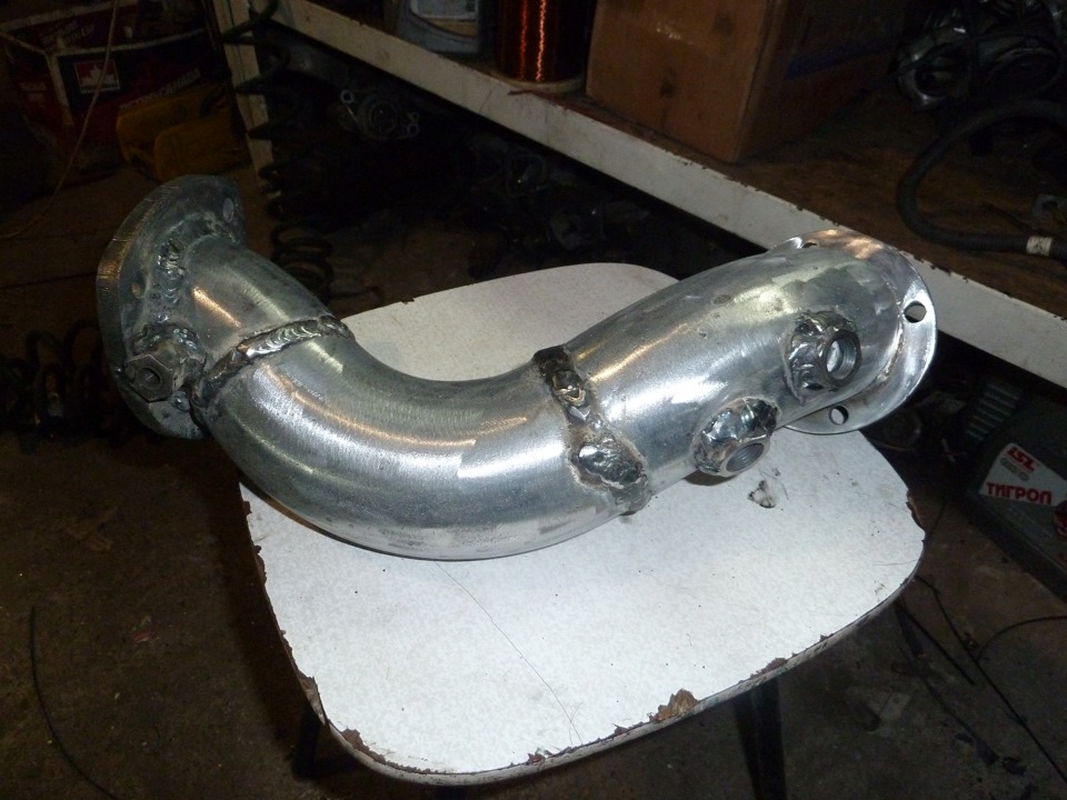 Далее подготовка к сборке выпуска, установка турбины и изготовление по месту выходного патрубка с турбины.
