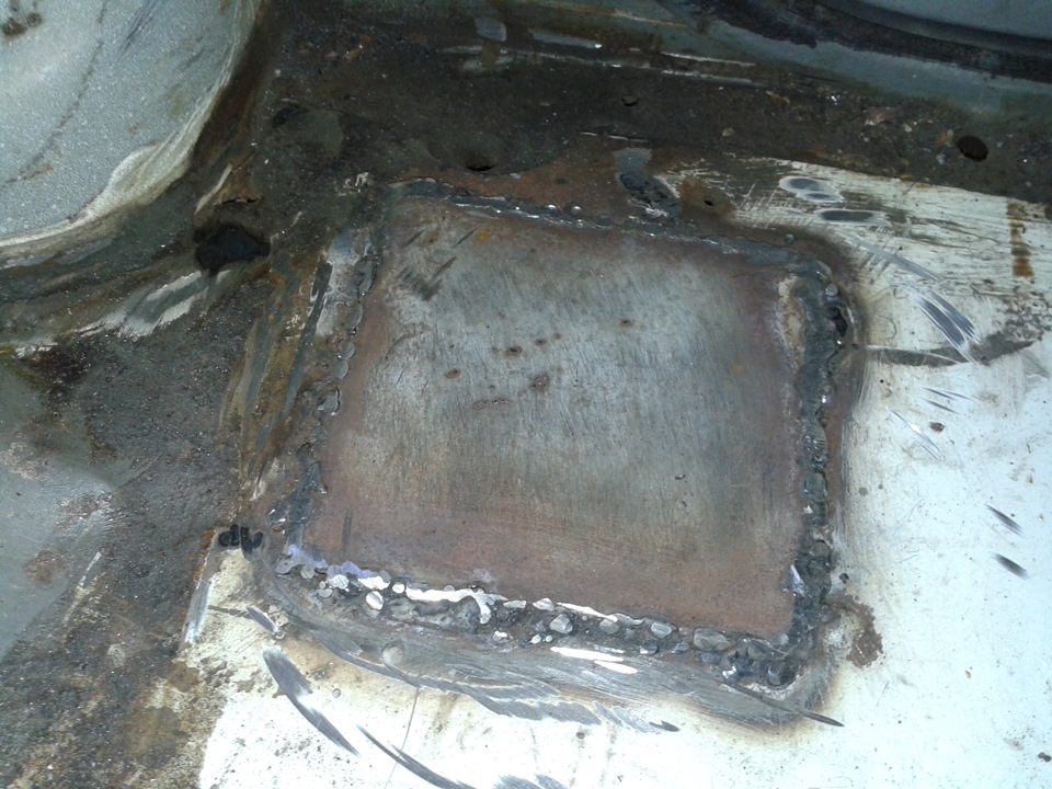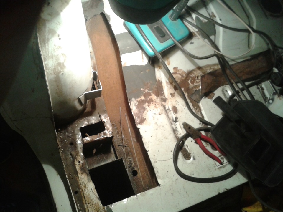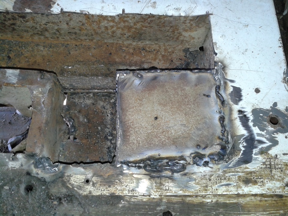 Небольшой сюрприз преподнёс правый порог… пара/тройка дырочек 2-4 мм и две 2*30 мм. Попытаемся запаять их либо вставные латки делать придется.