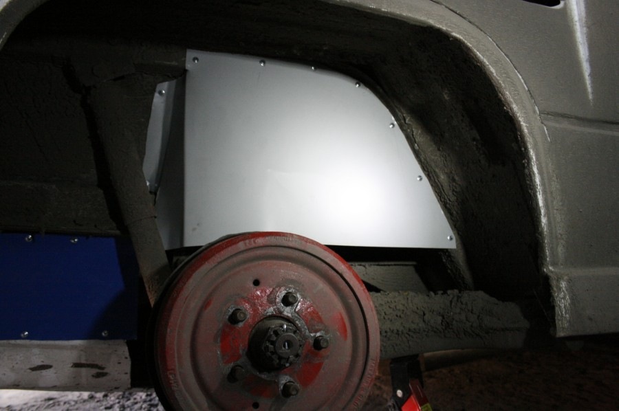 установил защиту из проф-листа, чтоб зимой не выстужало двигатель да и чтоб меньше грязи с улицы попадало и так масло капает тут еще и грязь, но и как оказалось стало на много меньше слышно двигатель с улицы, даже стало слышно глушитель )))