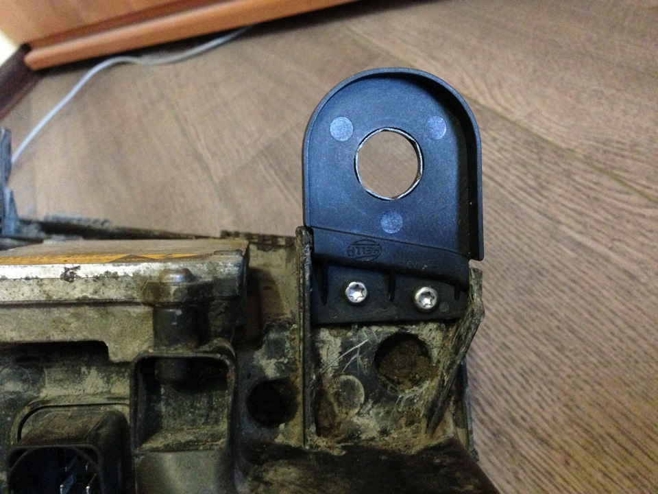 Легкотня! Просто прикручиваем на саморезы новое ушко в штатные отверстия.