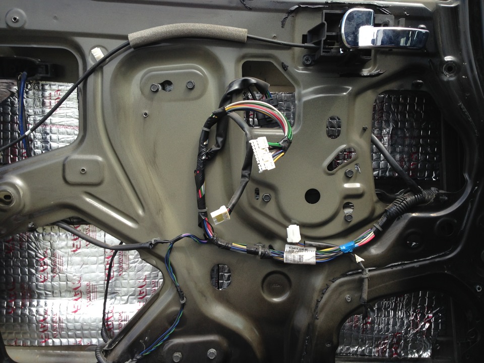 на каждую дверь было израсходовано по 4 листа материала, две с фальгой и две типа паралона, не знаю как они правильно называются. результат оправдался, музыка стала играть объемнее.