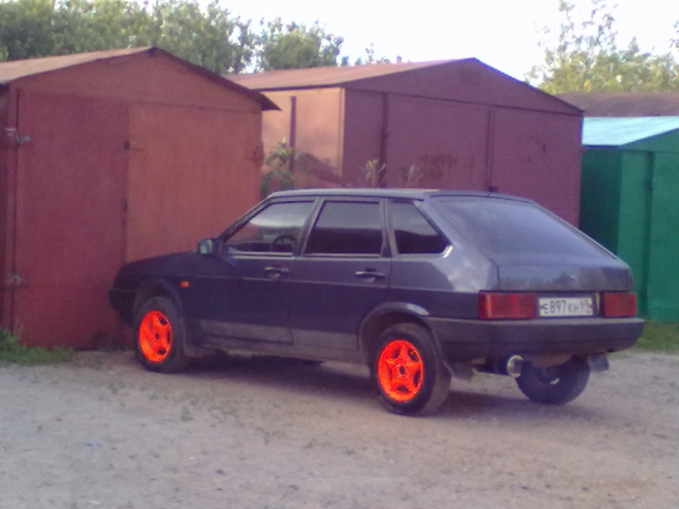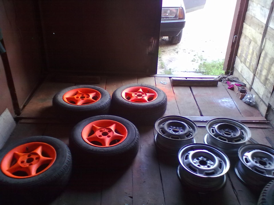Поменял спереди подвеску, стала чуток выше, но будем с этим бороться)И за одно поставил диски, надоели в гараже валятся) Моя девятокча три дня стояла на пеньках бедняга(На 6 фотке типо развал=))