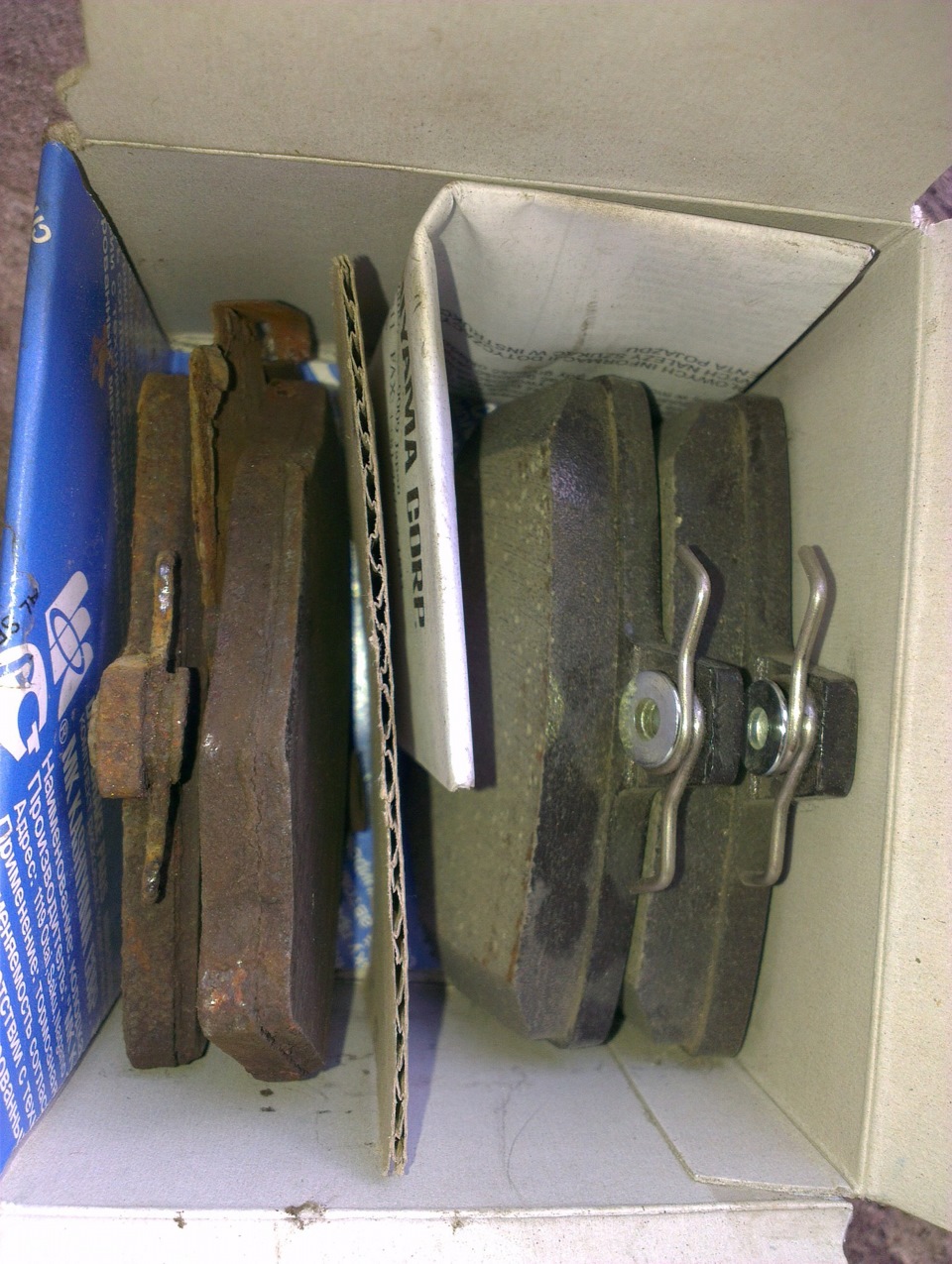 Задние колодки были в хлам на одной стороне там где у нас суппорт клинил (ЗАПИСЬ в бортовике)