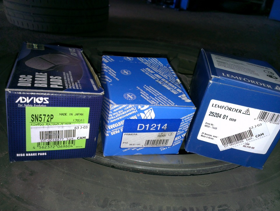 Друг мне ее удачно забортировал в шинке, и пока машина висела я колодки поменял по кругу, на двухпоршневые тормоза взял по совету колодки Advics (сделано в японии, поставляется на конвейер тойоты и ниссана), а задние взял Кашияма.