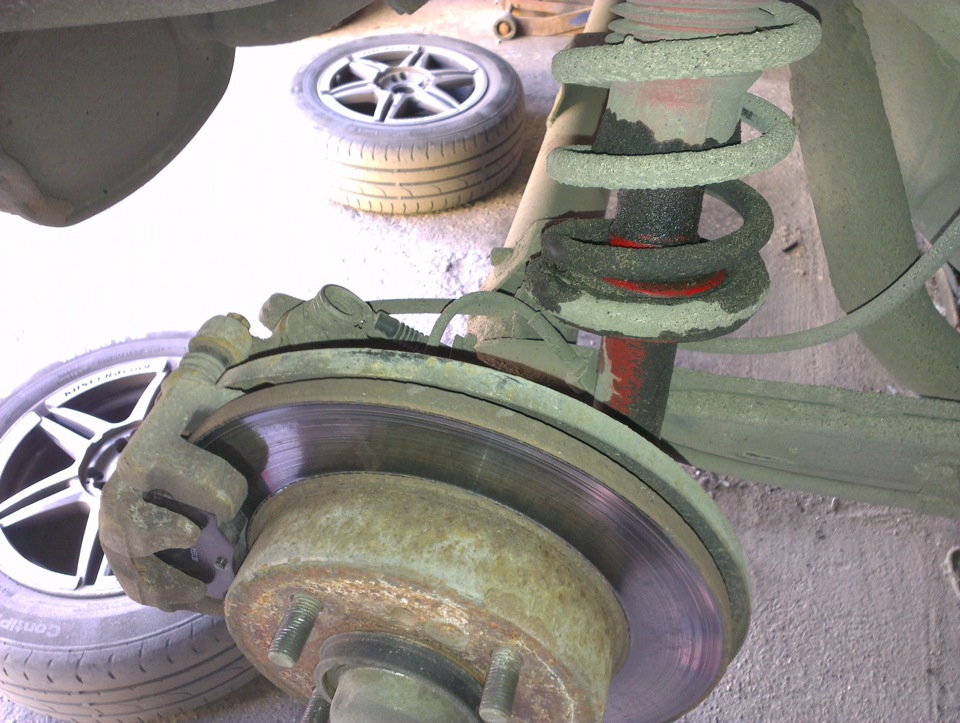 Когда начал ставить задние колодки, пришлось пое***** так как грязи много было поршень пришлось разработать, и на другой стороне заклинило направляющую (туда я не лазил с момента покупки авто в сентябре) …пришлось снимать скобу и в тиски…