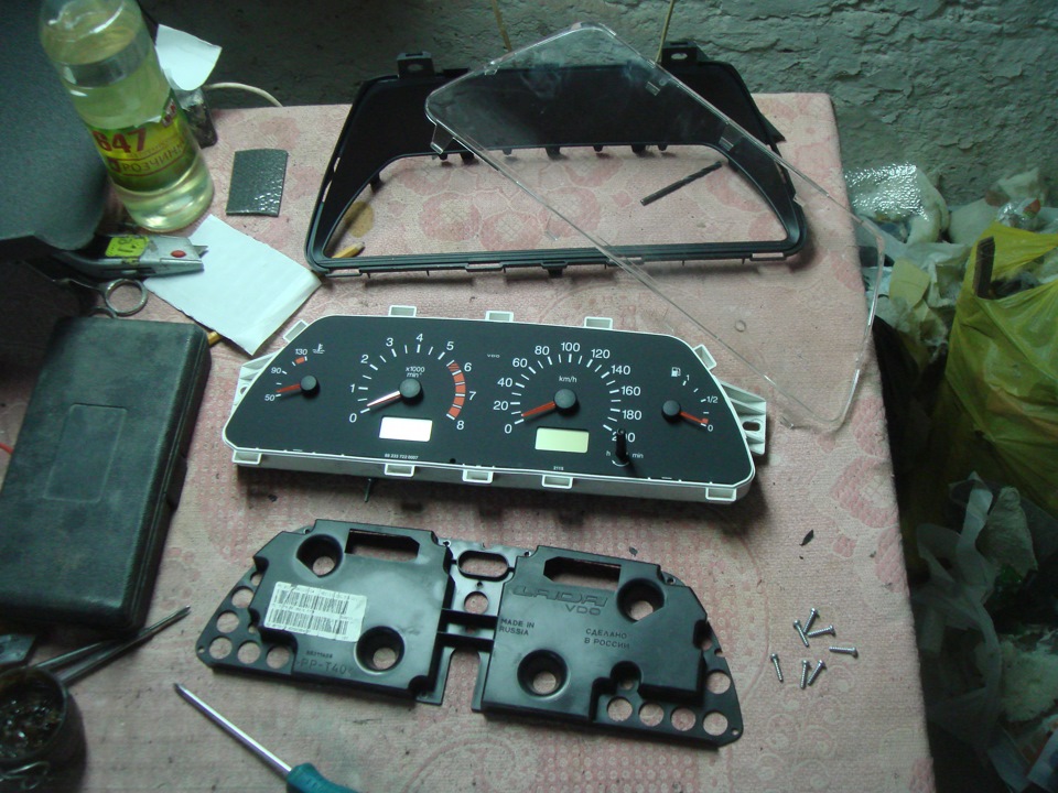 мужик, ты вообще великолепен! жаль что у меня тоже руки из жопы(( хотел тоже инверсию сделать, но только пленку попортил, а так же запорол датчик температуры. в итоге пришлось отдавать на починку чуваку. сделал он мне так же пересвет, в тех же цветах, но экран один стандарт с красной подсветкой, который с инверсией тот вообще без подсветки остался. так и езжу теперь. ах да еще подохло два диода на стрелках температуры и бенза, теперь они не ярко красные а изредка моргают только…ну ты мечту можно сказать мою воплотил в своей приборке, вообще нет слов, красавец!