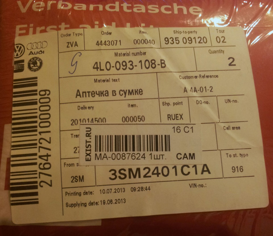Приехали новая антенна и новая оригинальная аптечка ауди.