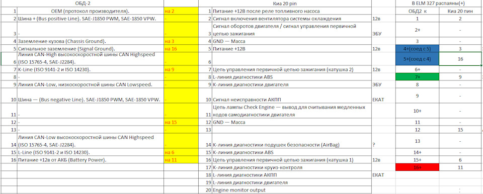 (у меня в моторном отсеке диагностический разъём на 20 пин.)