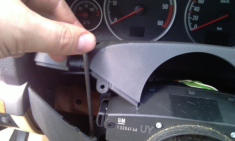 3.Дальше самое сложное. Пытаемся нащупать тот захват, который надо отогнуть, чтобы освободить кнопу сигнала. Усложняется все тем, что я не помню в какую сторону тащил.