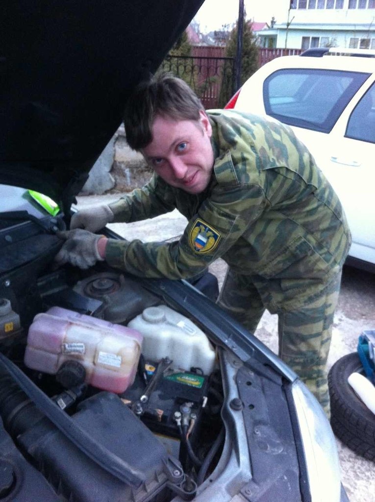 Я себе не мог представить насколько сложно всё это было.Начали снимать уплотнитель, откручивать водоотталкивающее средство на лобовом стекле (хорошо хоть не сняли), откручивать обшивку.Оказывается, чтобы снять расширительный бачок надо под небольшой силой найдя правильный угол просто вытащить его.Вытащили.Хотим поставить новый, а он другой.Его цена 300р.