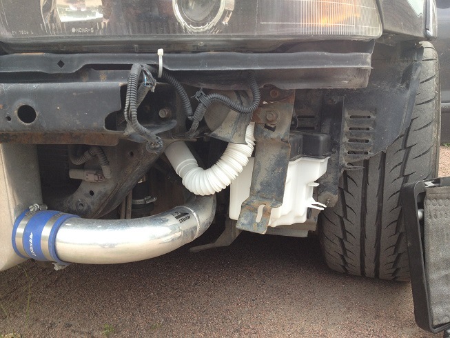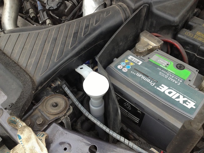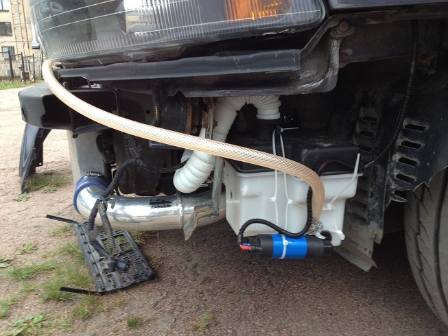 Закрепил бачек для омывателя фар, в левую нишу бампера.