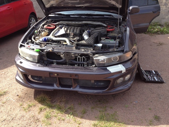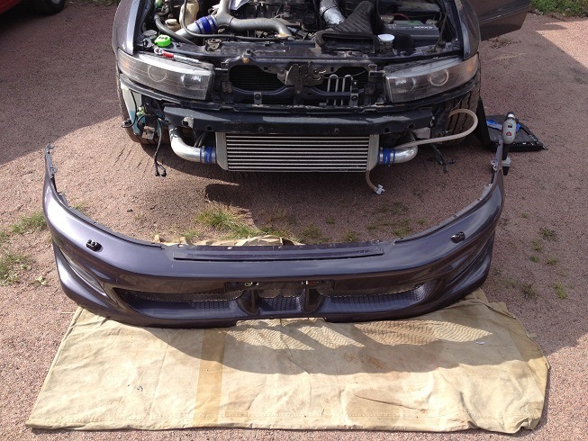 Повешен новый бампер и фактически вид машины стал более интересным попутно таманки перебраны, отполированы и забронированы бронировочной пленкой. Фото процесса и окончательного вида:
