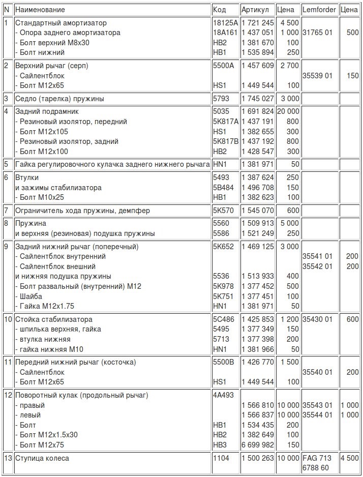 У Lemfordera есть сайт webcat.zf.com, там можно посмотреть все номера и описание, так же там SACHS и BOGE, ZF это автомобильный концерн поставщиков.