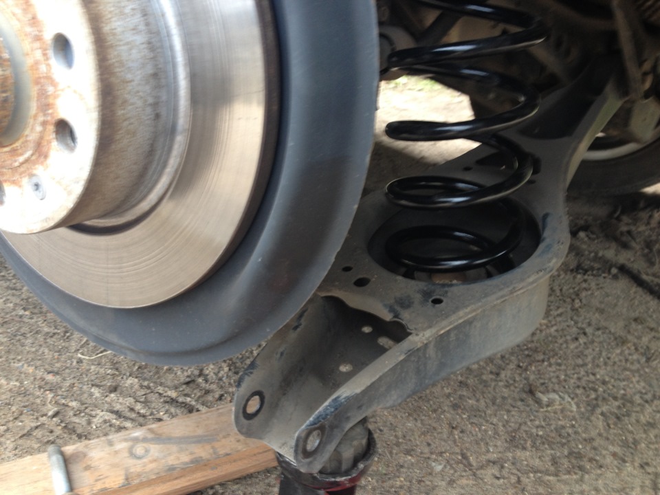Когда новую заднюю пружину ставишь надо ее стягивать? Или домкрата достаточно чтобы поджать рычаг на место?