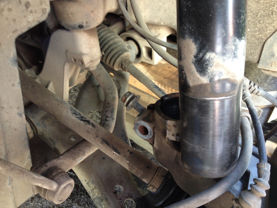 Застрял на стадии Надавил и вытащил стойку. Не хватает расстояния. Стойка из ступицы вышла сантиметра на три и все, рычаг уперся внизу, стабилизатор уперся в шрус…
