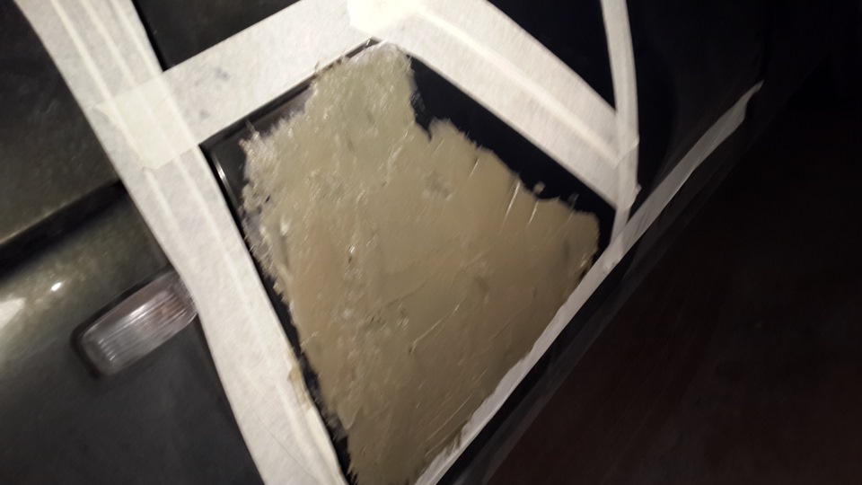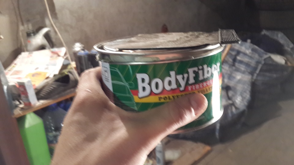 Для начала выпрямил вмятину, и нанес стекловолоконной шпатлевки для упругости:
