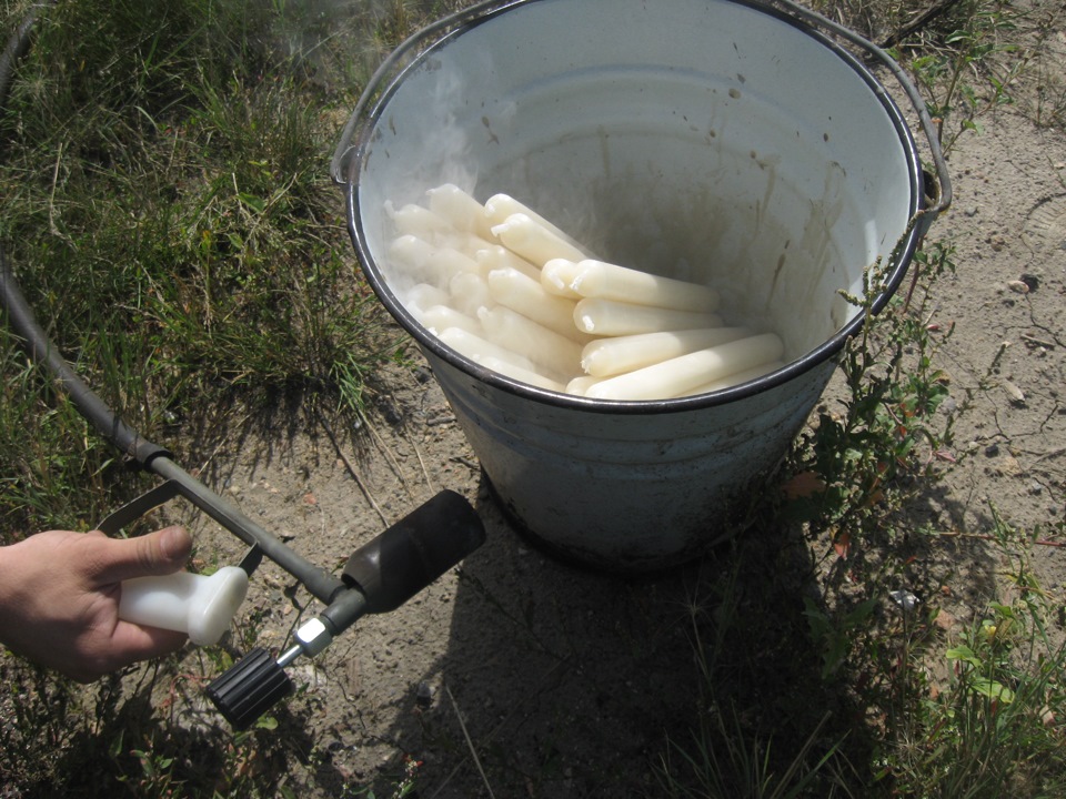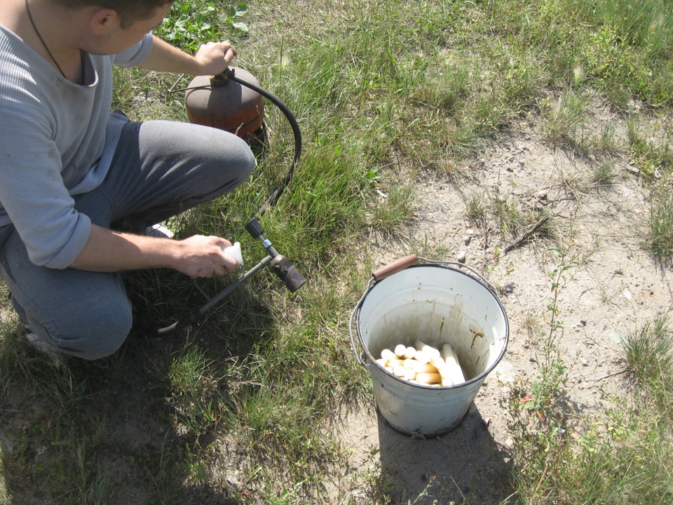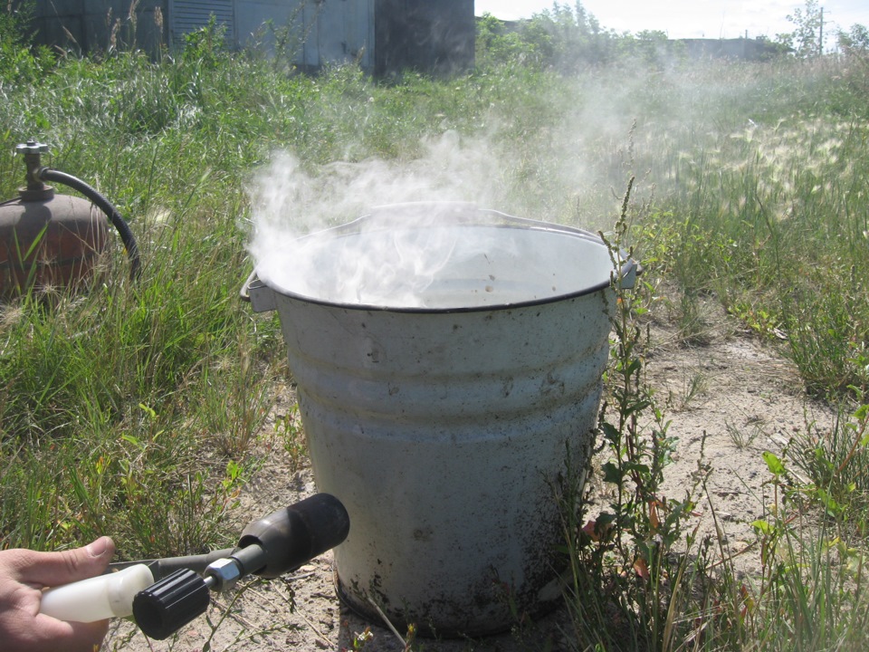 Дальше берем паяльную лампу или газовый балон… и начинаем греть все это дело… греем до жидкого состояния…