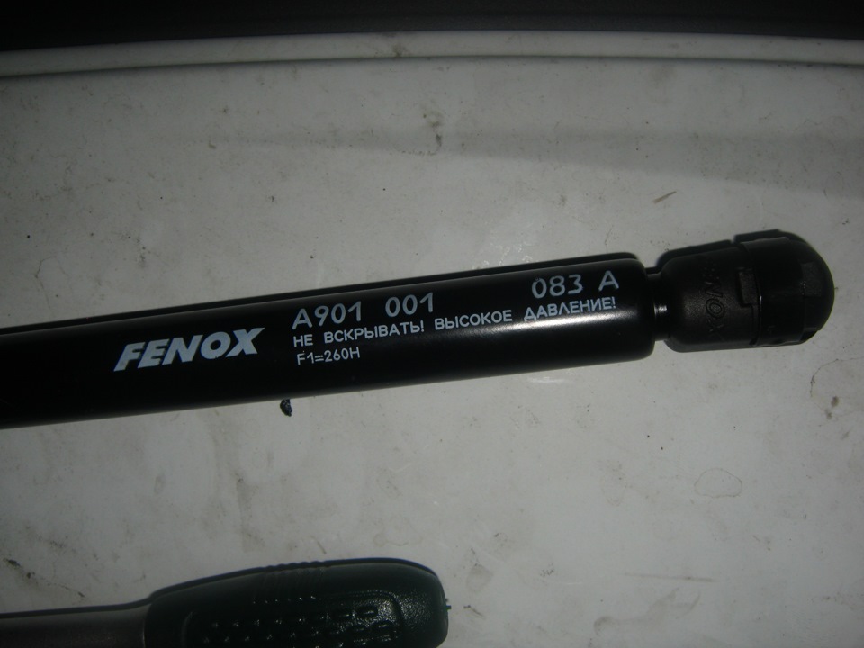 Решил установить газовый упор капота на Ларгуса. Цена готового комплекта на Логан-Ларгус колеблется от 1000 до 1500 рублей. Цена мягко говоря неадекватная, ведь цена идентичного упора капота от ваз 2110 FENOX стоит всего 230 рублей, собственно его то я и приобрёл. Единственная проблема с которой я столкнулся при установке это разница резьбы на болтах (на FENOXе резьба на 8, а на Ларгусе применяются на 6). Ну да это мелочи. Берём в руки напильник и плашку на 6, а затем начинаем стачивать излишки напильником да нарезать новую резьбу на 6. После того как сделали болтам новую резьбу можно приступить к установке на машину. Прикручиваем всё это к крылу и капоту соответственно, после чего надеваем газовый упор. Готово.