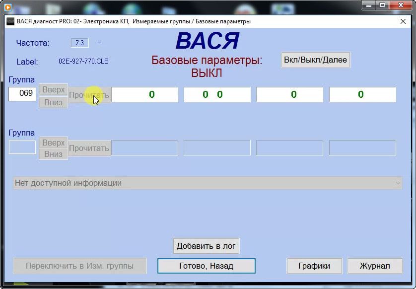 в группе 069 после нажатия на "прочитать" и "вкл/выкл/далее" ничего не происходит. Базовые параметры остаются ВЫКЛ. Это нормально?