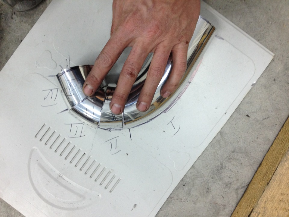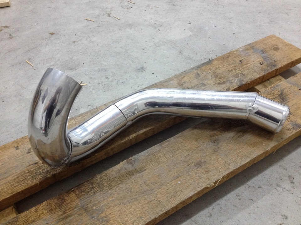 Выход есть всегда, выход нашелся. Взял алюминиевую пластину, согнул ее по внешней дуге, как бы имитируя трубу