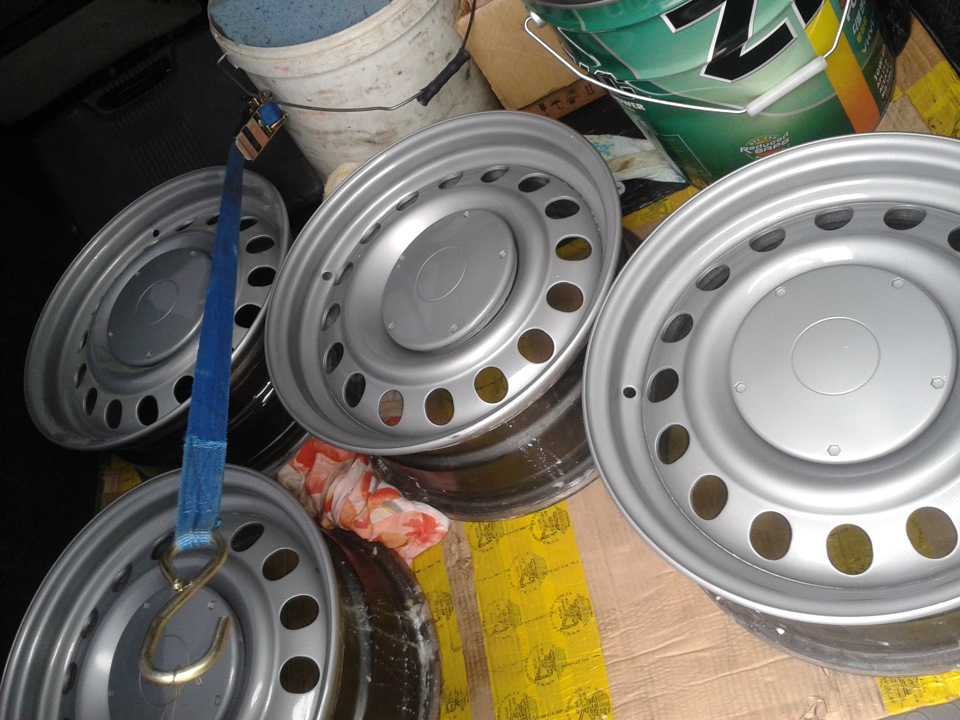 Так як в мене на літо R16 титанчики на зиму вирішено привести в естетичний вид металеві R15. Відчищені, покрашені і залаковані. Працював над ними знайомий! За роботу і матеріали 400грн.
