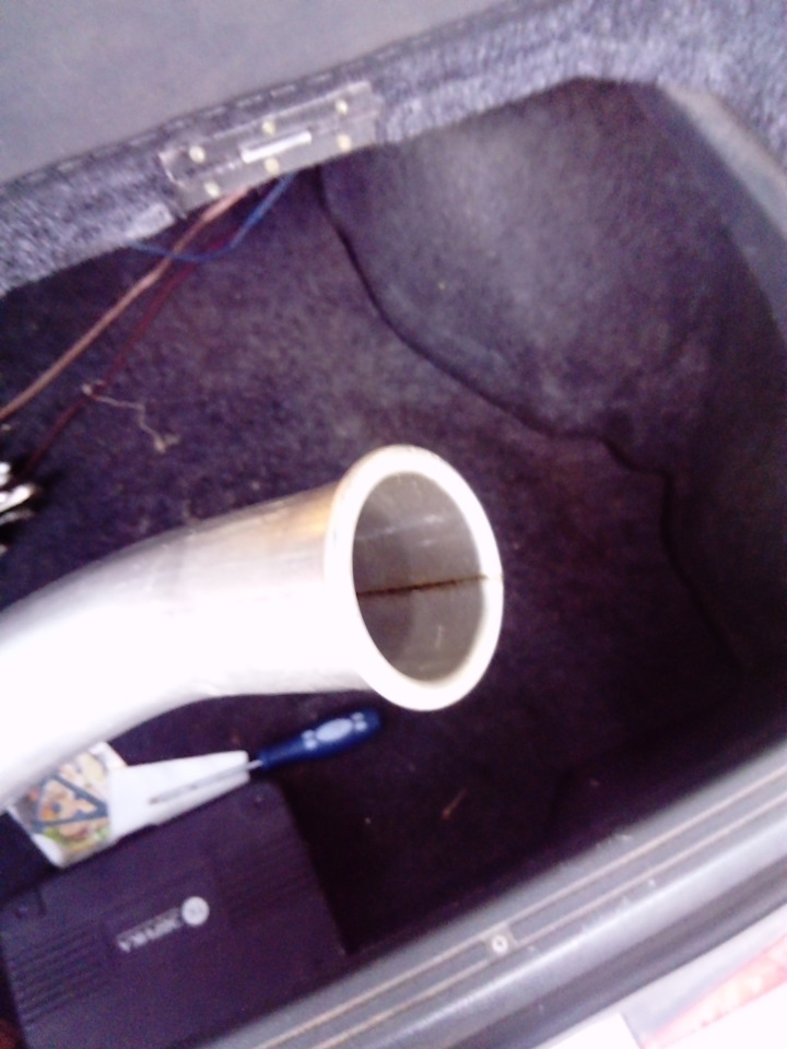 Также облазив весь авторынок, где-то в самых недрах магазина мегатюнинга xD, надыбал единственную насадку диаметром 100мм. Насадка оказалась не простая! Длинная и набитая базальтовой ватой, можно сказать — банка прямоточная. Ну и гиб соответственно! Все на 51 трубе… =)