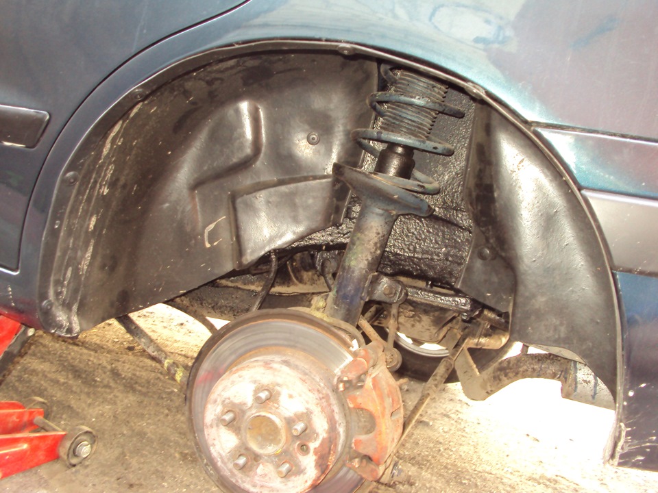 С помощью пластмассовых пистонов Ø8, сверло Ø 7,3 грунтовка, покраска отверстий и монтаж подкрылков