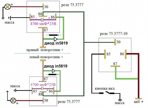 3) вариант который выбрал я, и наиболее сложный (создание двух режимов поворотных лампочек с помощью 5-ти контактного реле, диода и конденсатора). О всех своих действиях я и попытаюсь вам рассказать.