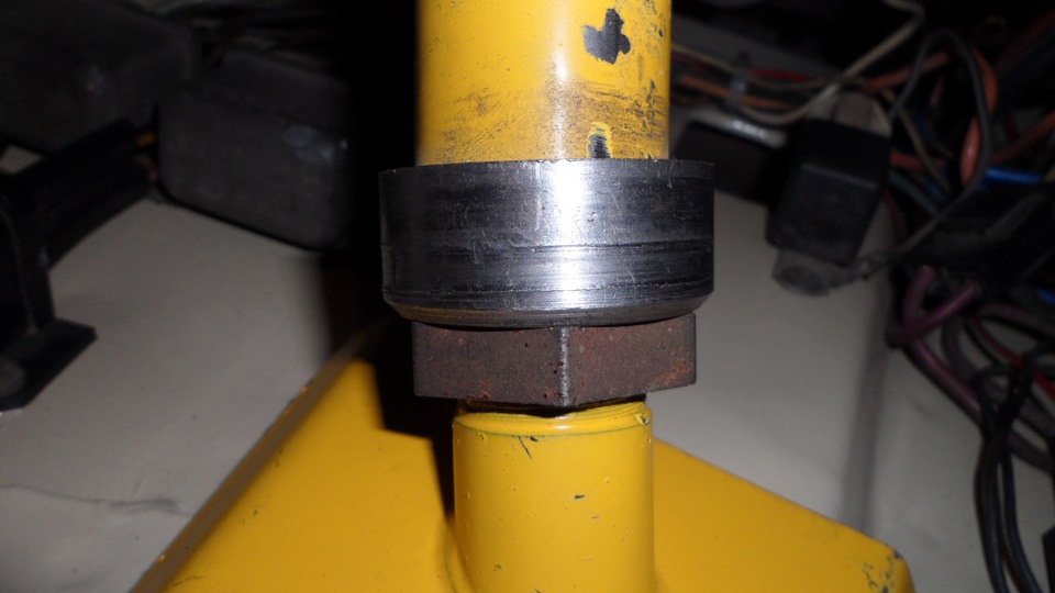 Купил распорку и начинаю устанавливать а она чучуть длинаватая пришлось подпилять и я слышал про плохую репутацию стандартных гаек по этому подошол до токаря и попросил чтобы он выточил мне гайку но непростую что бы краюшек гайки заходил в растпорку, спасибо токарю но я ещё не успел её растянуть дожно быть класно и на поворотах по жоще.