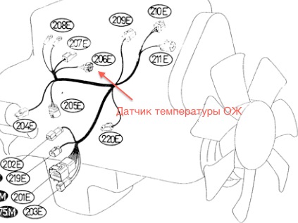 4. Протягиваем провод от датчика температуры. Датчик двухконтактный, второй вывод замыкаем на массу.