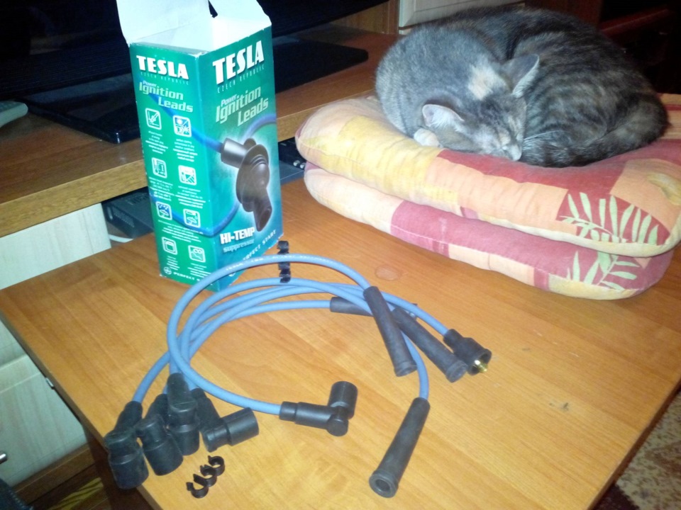 Вспомнив, что ВВ провода у меня неизвестного производителя и неизвестного качества, я решил их заменить на "блатную" Теслу.