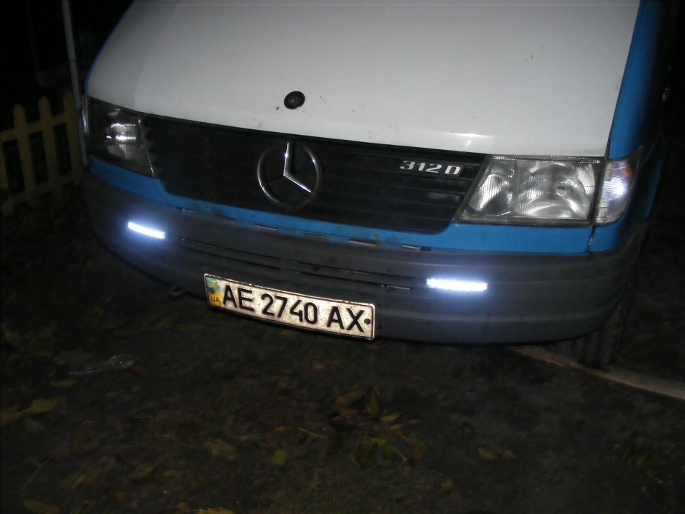 ДХО может быть и не в законе, но у мерседеса есть место в фаре под противотуманку и туда спокойно становица светодиодная лампа. У меня Н3 и я вклеивал патрон под нее. Смотри мой бортовой журнал, яркость немного слабее чем у тебя, но днем видно отчетливо и ДПС претензий не имеют.