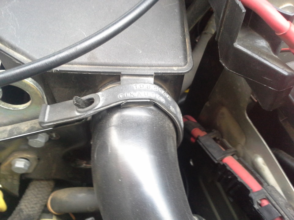 2.Снимаем резинку, которая держит впускной патрубок, а затем и глушитель впуска