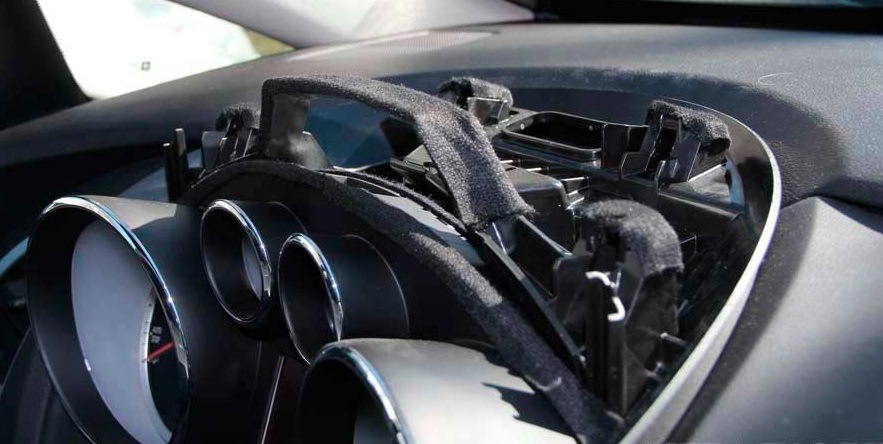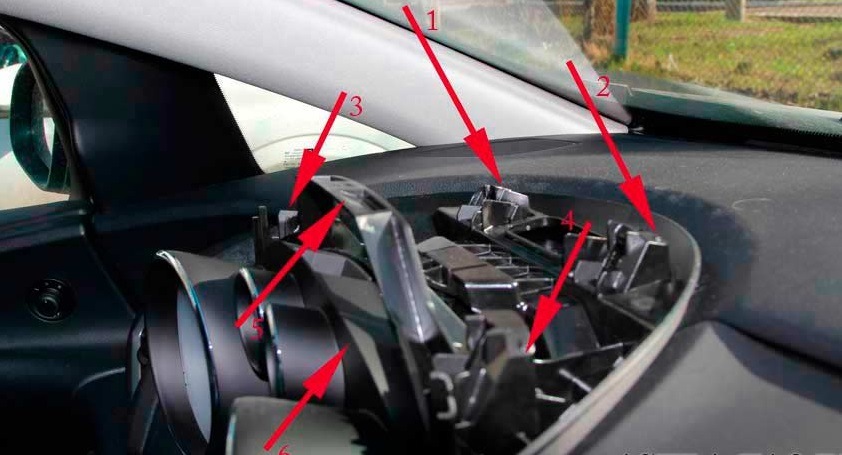 1) Снял козырек панели приборов, сразу видны места возможных скрипов (фото 1,2)