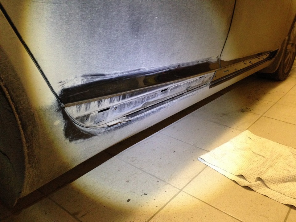 Для этого поверхность была подготовлена для покраски скотчбрайтом (серым):
