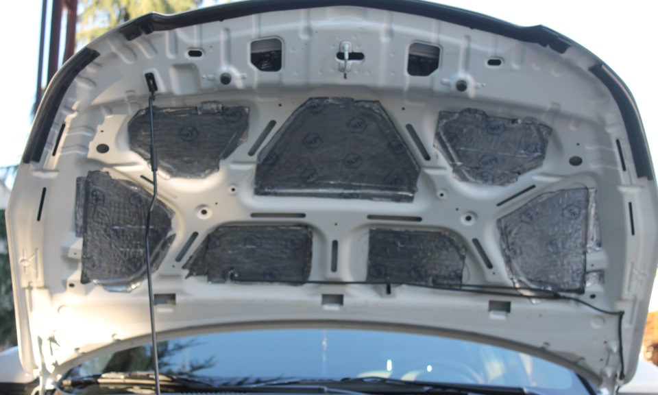 после первой машины остался вибропласт решил его применить и проклеил капот.И заодно добавил света в багажник, стало намного светлее.