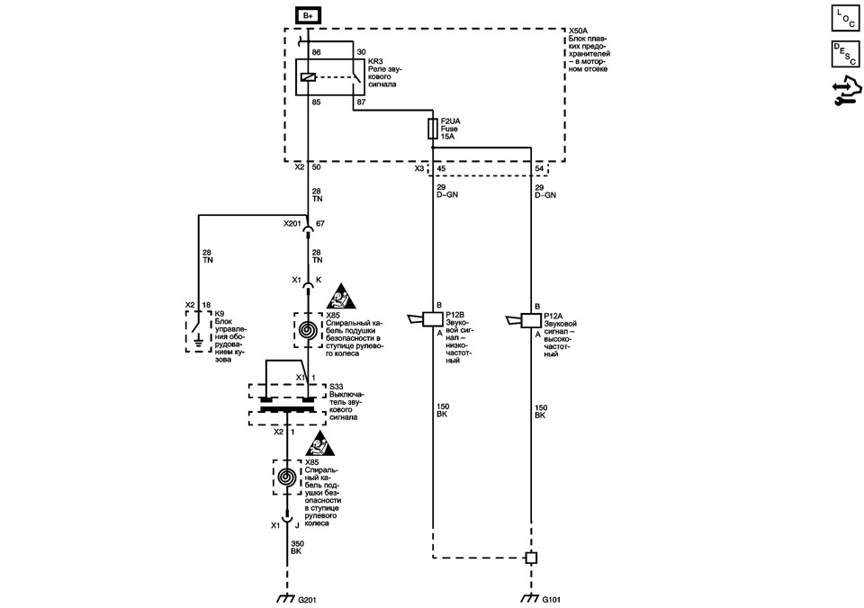 И, наконец, включение сигнала. Там при нажатии на центральную часть подушки соединяются пластины, к каждой подходит провод и всё это дело уходит в улитку. На снятом руле пластины с массой руля не контачат. Однако, по схеме видно, что нижняя пластина, так или иначе, всё равно уходит на массу. Зачем тянуть через улитку дополнительный канал, если можно нижнюю пластину сразу посадить на массу руля? Непонятно. Но в итоге ещё одну жилку освободить могу.
