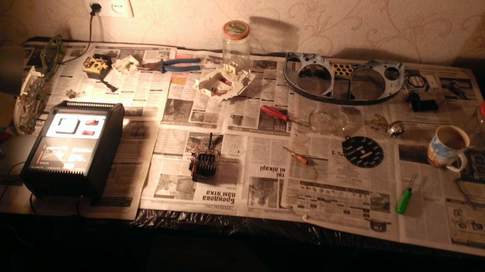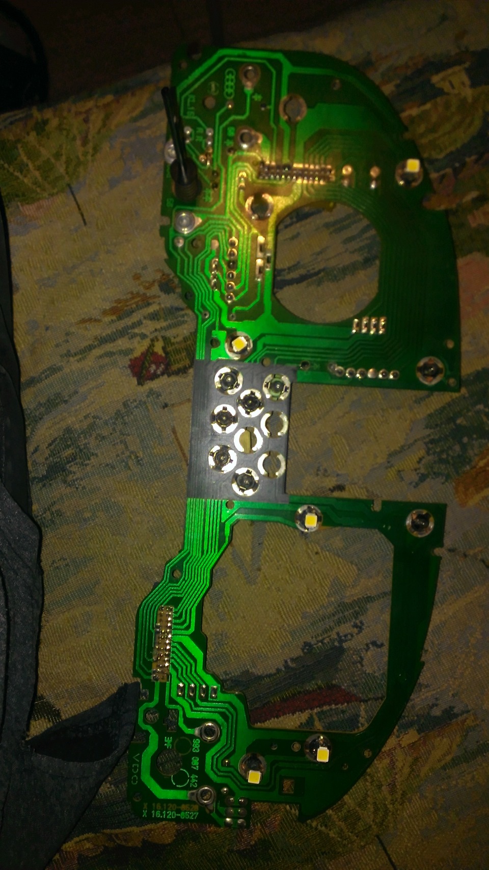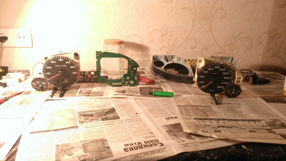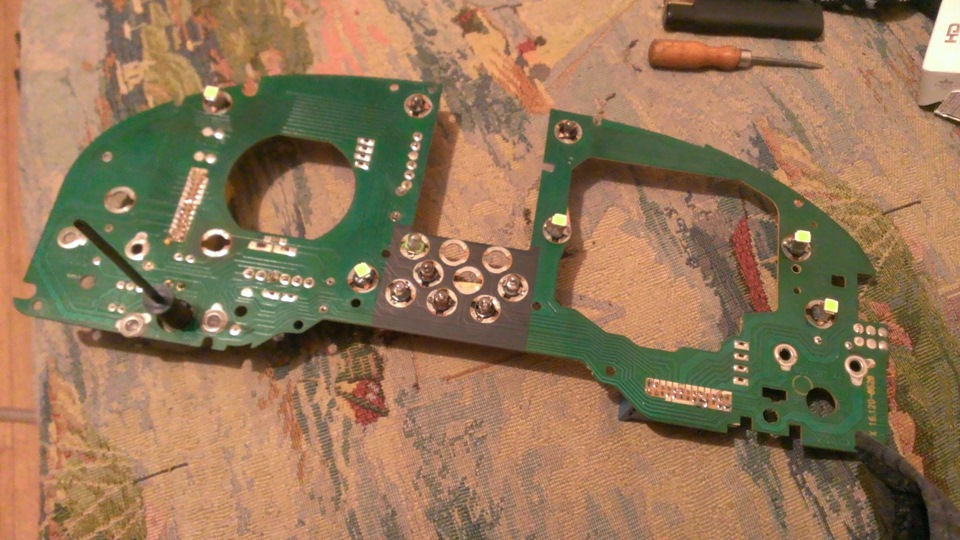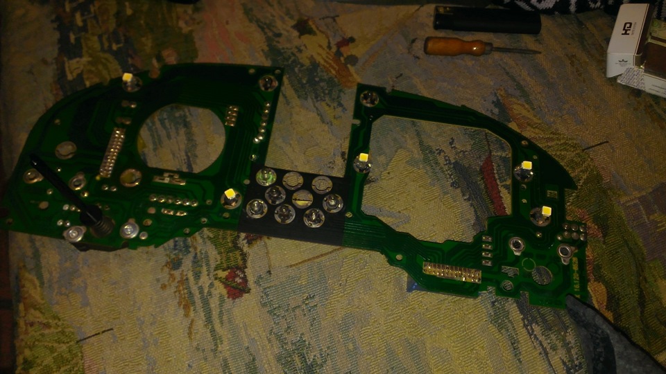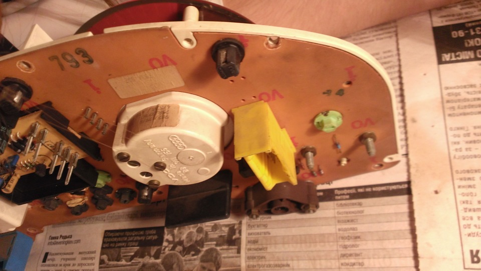 Перебрал приборную панель. Не работал спидометр и индикатор (показометр) температуры дрыгалки. Отвалилась пайка. Заодно спаял светодиодную подсветку в родной цоколь. Фото результата — как поставлю.