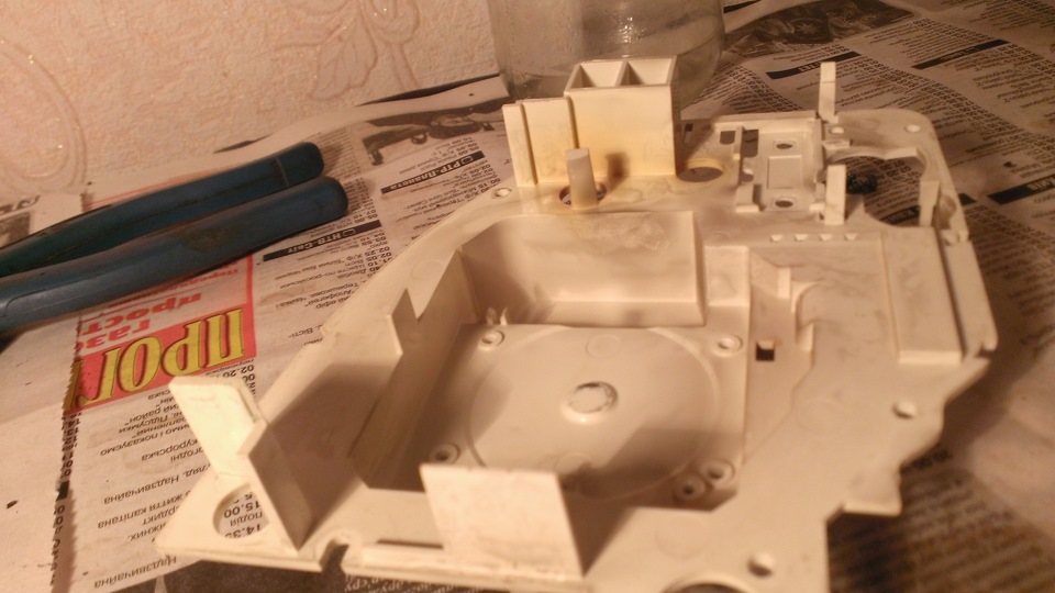 Да, я тоже выпилил. Правда, одомктр так и не работает — сломана вторая(большая) шестерня планетарной передачи. Думаю сделать формочку из пластилина да залить эпоксидкой)