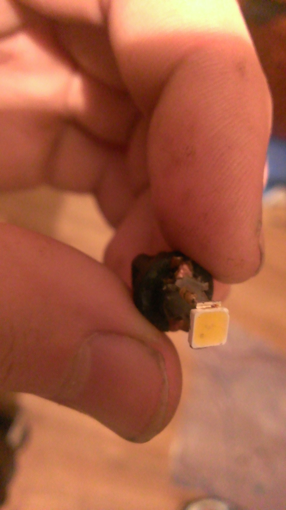 Сегодня (скорее всего ночью) буду паять еще один диод такой же — подробно поэтапно отфоткаю. А так вообще вроде все просто: Покупаешь светодиод понравившейся цветовой температуры (у меня вроде 4000К, вечером будет фото), покупаешь (находишь в кладовой) резистор соответствующего сопротивления. Если что, к примеру вот здесь cxem.net/calc/ledcalc.php есть калькулятор сопротивления для диода уже готовый. И схему подключения выдаст. Там "Прямое напряжение" — напряжение, на которое светодиод рассчитан (по характеристике диода смотреть), прямой ток светодиода — аналогично, смотреть по хар-ке (обычно бывает 100 — 360 мА). Там еще небольшие ньюансы по разборке цоколя и сборке назад со светодиодом, будет в БЖ.