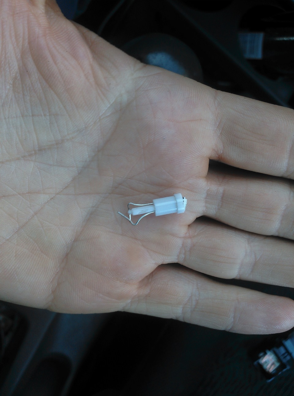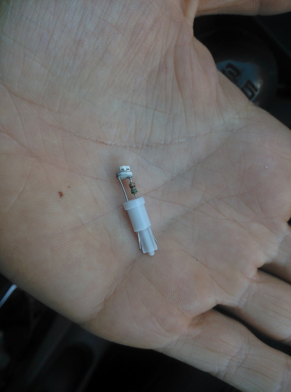 И так, берем собственно те же диодные лампочки, которые мы минуту назад вставляли в саму центральную консоль и начинаем процесс разбора. Процесс разбора будет показан на белом светодиоде, потому что когда делал синие — забыл всё пофотать :)