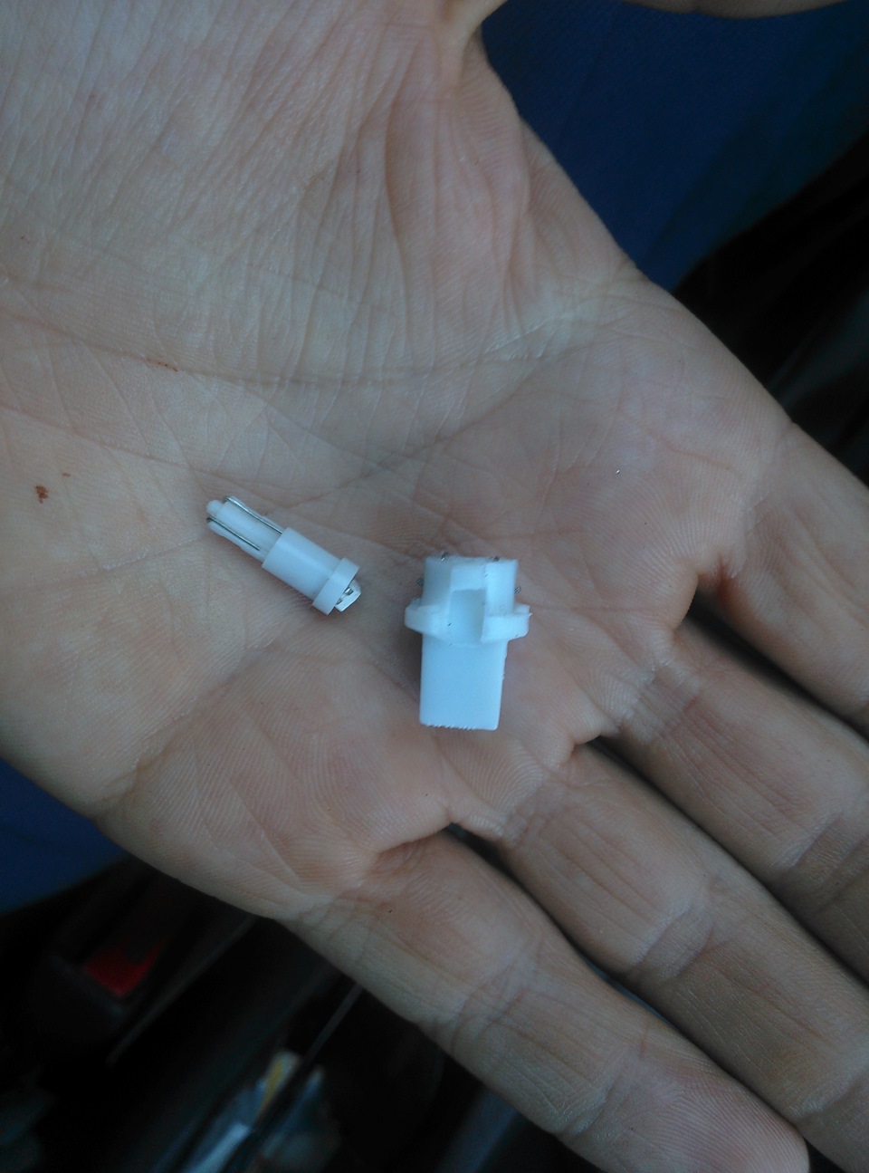 С заменой подсветки в самой центральной консоли проблем не возникло, там у меня стояли собственно просто светодиодные лампочки с цоколем Т5. Сгонял в магазин, купил синие, поменял и на этом всё. :)