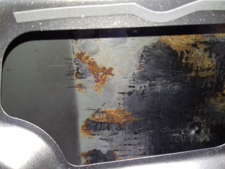 Удивляет то, что царапина на заднем крыле за 3 года даже не окислилась, то же с порогами, а вот на крыше ржавчина есть… непонятно разный металл для разных частей кузова?